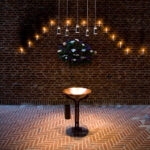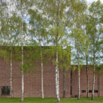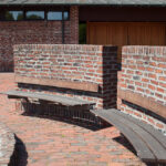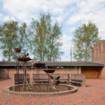 På kirkepladsen er opstillet en vandkunst med kar af corten stål.