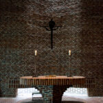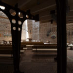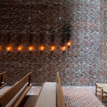 I Islev Kirke er interiørets dunkle stemning og skønheden i det svagt belyste rum dyrket, inspireret af de romanske kirker.
