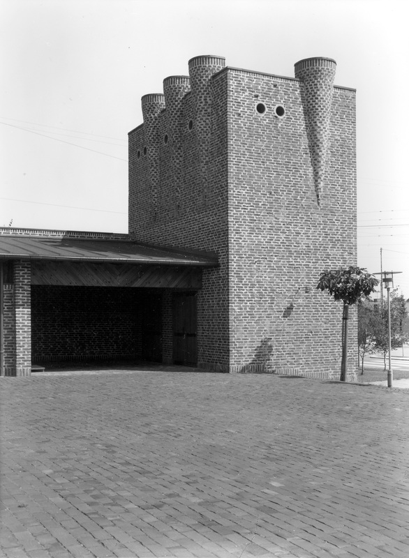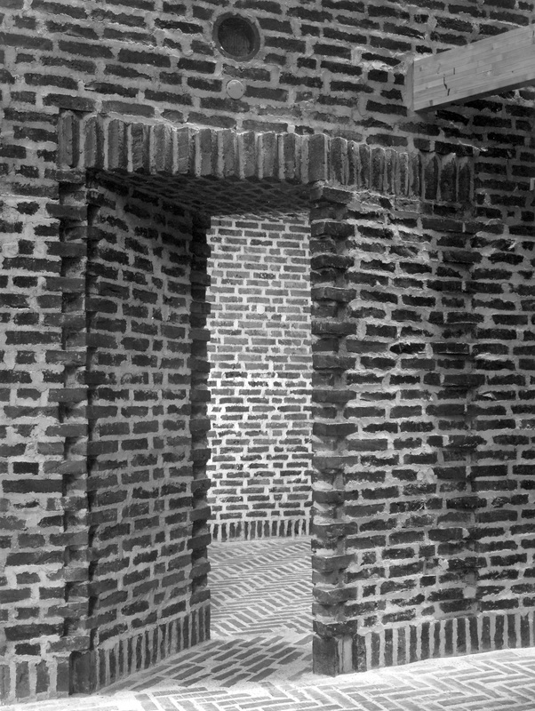 Tårnets klokkerum og glamhuller er formet som murede opadvendte trompeter, hvorved lyden blødgøres, før den når øret.